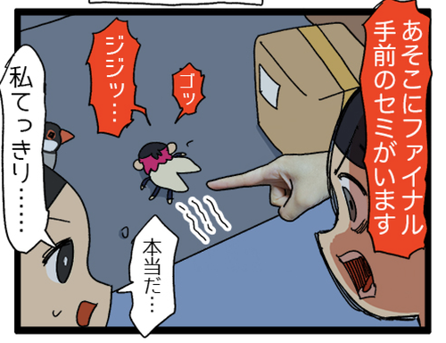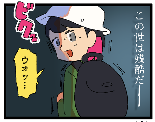 セミって何で人間を脅かしてくるの③ おわり ▼前回のお話 もう一生外に出られない………………って思ってたら1日くらいで姿消えてた。ワイの勝ち♪(突然強気になる)セミ怖い!って漫画ばかり書いてるけど、虫はとにかくほとんど苦手です。写真でなら見られるし、体の構造とか機械みたいで生物的にめちゃくちゃかっこ ... 続きを読む 2023年08月04日