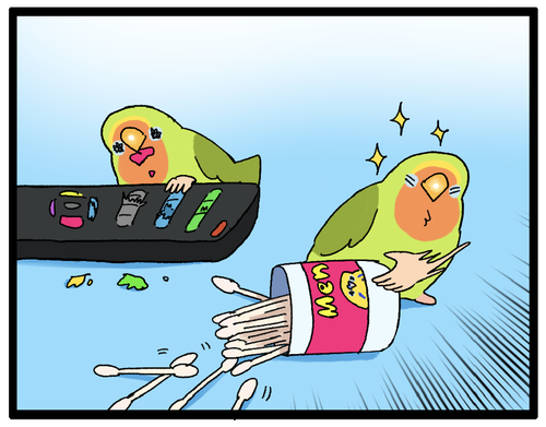 【パルちゃんの思い出】綿棒で遊ぶのが大好きなインコ 綿棒振り回すのが得意でチアガールみたいだった!!(男の子だけど)▼パルちゃんの思い出漫画 ぷぷぷぷぷぷぷぷぷぷ▼パルちゃん、綿棒のみならずウィッグも毟る コザ男子、何でもおもちゃにしがち!!おまけパルちゃんの綿棒写真を探そうとしたらなかったので代わりにかわいい ... 続きを読む 2022年08月01日