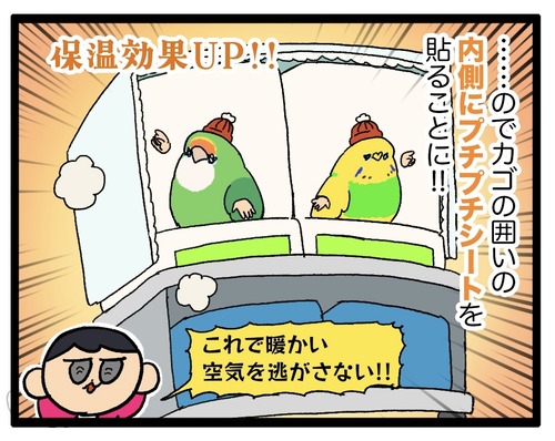 【ポカポカ】我が家の鳥、暖かに─ ─ ▼保温についてのまんが もちろん鳥達の保温が最優先!……なのはあるけど、それでも鳥たちを温めるために暖房をつけて、その恩恵にあやかる飼い主は、いる─ ─鳥かごを囲うように段ボールなどを立ててその内側にヒーター、プチプチシートを貼るの本当におすすめです。ヒー ... 続きを読む 2025年11月22日