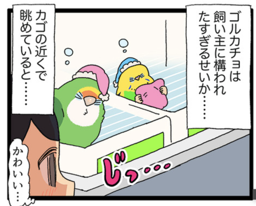 【カチョ退院】え?あ、どうも……🦜🦜 ▼前回のまんが 逆に安心、か…………?お互いに呼び合うのに、意外と冷え冷えな二羽なのでした。▼ゴルカチョ関連のまんが でもゴルちゃんじゃなくてカチョを放鳥して様子を見ていたらチュッチュしていて飼い主は幸せな気持ちになりました……♪ この投稿をInstagramで見 ... 続きを読む 2025年12月21日