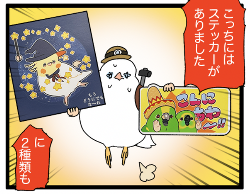 【事後通販ありけり】11月の新作グッズの紹介! こんにちは!えるぽぴです。今日は新グッズの紹介と、直近のイベント参加の案内をしたいと思います。連休は鳥フェス大阪!えるぽぽは最終日の4日に1DAYで参加します。前売りチケットを買うとえるぽぴのイラストを使ったクリアファイルがもらえるらしいです。今年の夏に上野こ ... 続きを読む 2024年11月01日