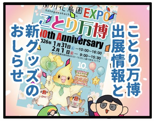 📣参加告知 2025年の出没予定📣 お世話になっております、えるぽぴです。今日はブログ漫画をお休みして今後のイベント参加を告知させて頂きます!「いきものと生きる‐ひろがるつばさ展‐」9/19-10/5大阪・枚方蔦屋書店様で開催される野鳥・インコ等をテーマにした「いきものと生きる -ひろがるつばさ展-」 ... 続きを読む 2025年09月15日