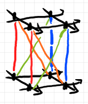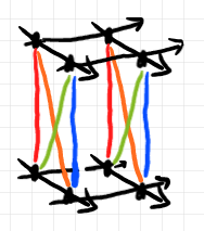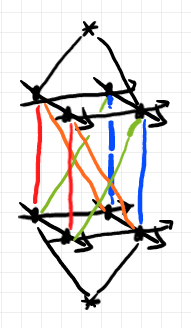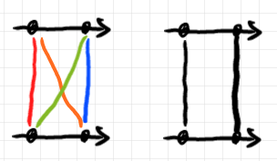 ところでどうでもいいが、$`A\otimes \I`$ のストランド図は、見る方向(または番号の付け方)を変えて次のように描いたほうが見やすかったな、と。