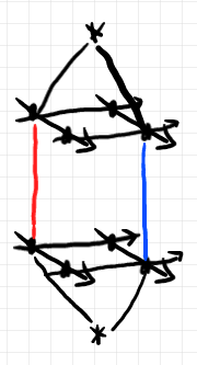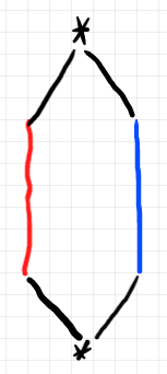 $`A`$ と $`\I`$ をストランド図(ストランド方向は上から下)で描くと: