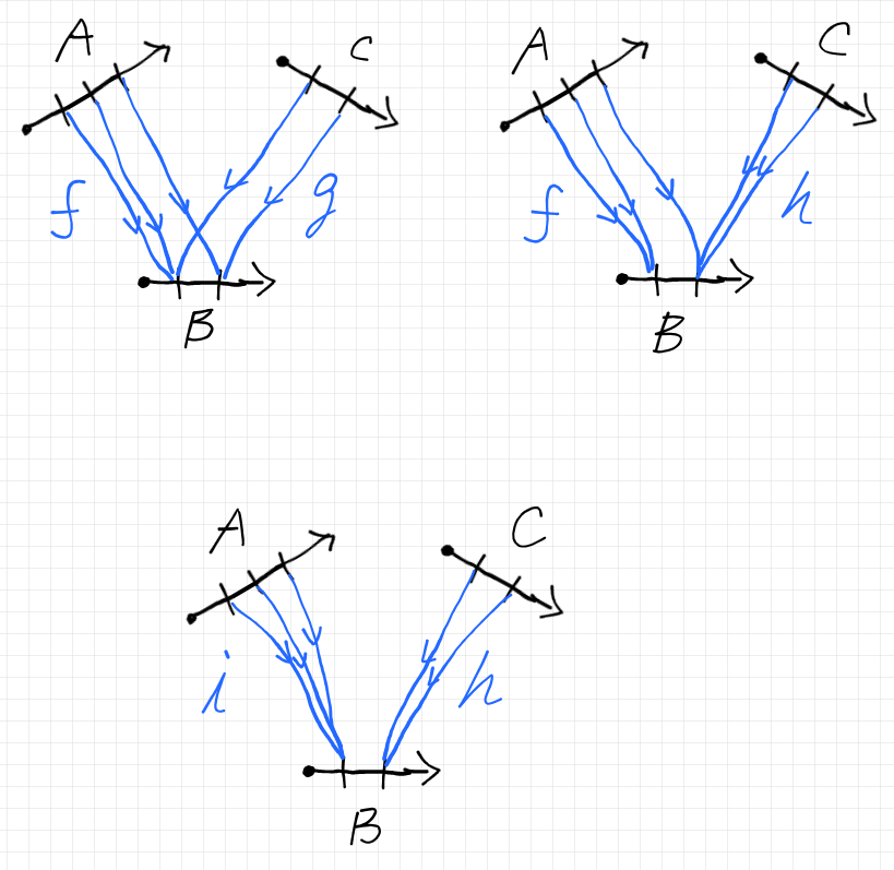 - $`A\NFProd{f}{B}{g}C \cong f;g^t`$ (イコールだとしても、それを $`\cong`$ と書いて悪いわけではない。)