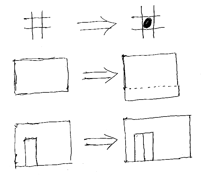 空欄だったセルに何かを描くことは、先の Cell#draw(value) で表現されます。テーブルの一番下に新しい行(row)を追加することは、Table#addBottomRow() としましょう。列(column)を2つに分割する操作は Table#splitColumn(baseCell) とします。Table#splitColumn(baseCell) は、Cell#splitColumn() のほうが使いやすかも知れません。