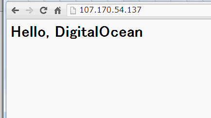 vagrant provision で強制的にプロビジョニングして、ブラウザでドロップレットのIPアドレスにアクセスしてみます。