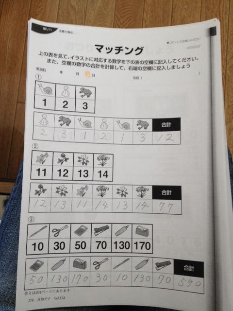 全問正解している、驚いた。「計算はどうやったの?」と聞くと、「ソロバンがないから、暗算だよ」と言っていた。