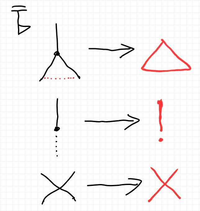 - 圏の射を、丸、四角、三角などのノードで描く。