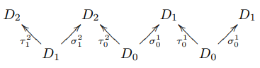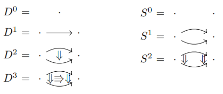 - 球体圏〈球体の形状〉$`\mathbb{G}`$ の射は、余ソース/余ターゲット〈cosource/cotarget〉と呼んでいる。辻褄が合っている。余ソース・アロー($`\mathbb{G}`$ の射)は $`\sigma_i : i \to i + 1`$