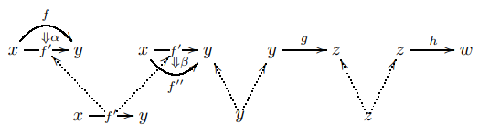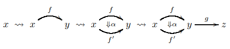 - 球体圏("category of globes" と呼んでいる)の射=形状アローは $`\sigma_i,\tau_i`$ 、球体集合の射〈関数〉は $`s_i,t_i`$ と区別している。球体圏を定義する関係式は "coglobular relations" 。球体集合の関係式は "globular relations" 。