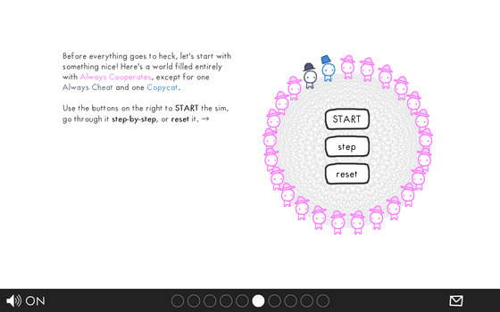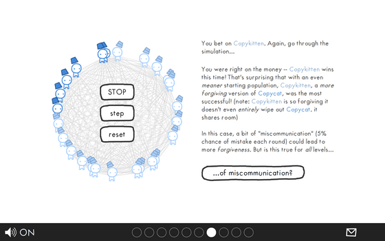 SNSの発展で、現代では複数の人が容易にコミュニケーションを取ることが可能になりましたが、コミュニケーションの食い違いでお互いに反発しあい、互いを信頼するどころかかえって信頼関係が損なわれてしまうことも珍しくありません。相手を信じるべきか否かを、単純なシミュレーションで学べる「The Evolution of