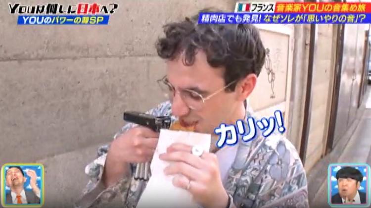 揚げたてのメンチカツを買って店を出ると、大きな口を開け、かじるサクサクした音を録り始めた。「咀嚼音にどんな思いやりが!?」と思ったら、「お腹がペコペコだったんだ。単純に僕の好物だったからさ!」と照れ笑い(笑)。