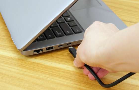 USB-C電源アダプターではなくACアダプタで電源に接続します。