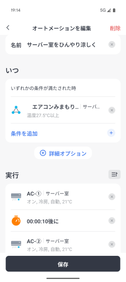 万が一オートメーションが作動した瞬間にエアコンへの給電が断たれていた場合に備え、トリガーとなる室温を少し変更して発動タイミングをずらしたオートメーションをもう一つ用意しておきます。
