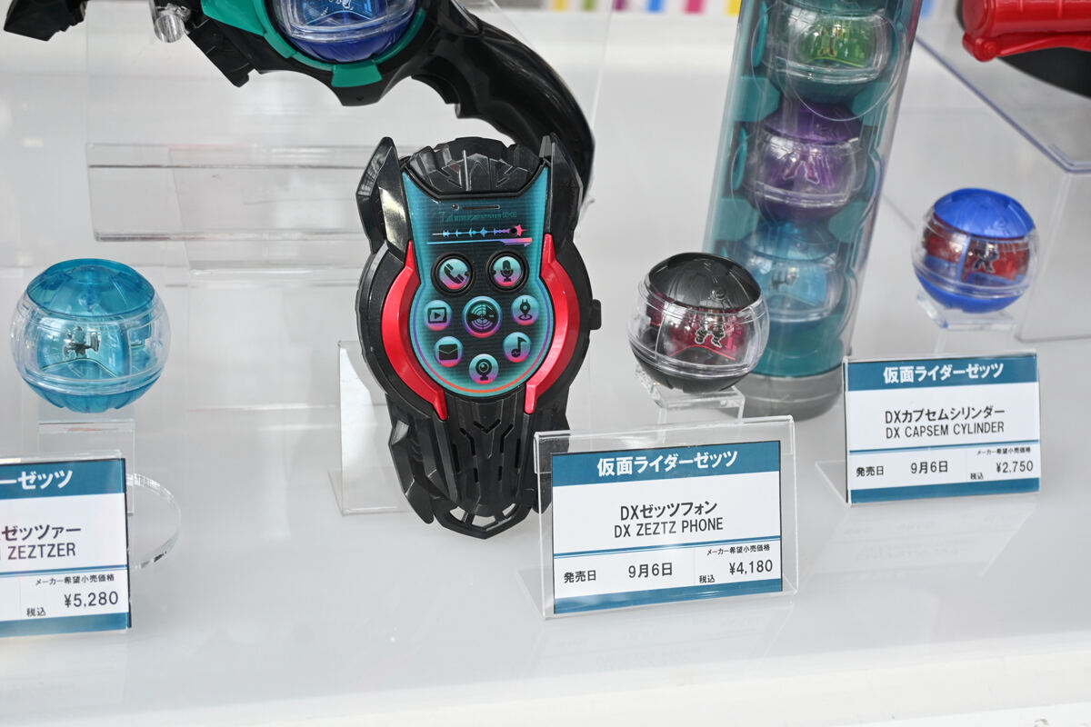 コラボブースでは、DXゼッツドライバーを中心に、ソフビフィギュア、DXライダーカプセムセット、DXブレイカムゼッツァー、DXゼッツフォンなど、放送開始とともに発売される『仮面ライダーゼッツ』関連商品がディスプレイされた。