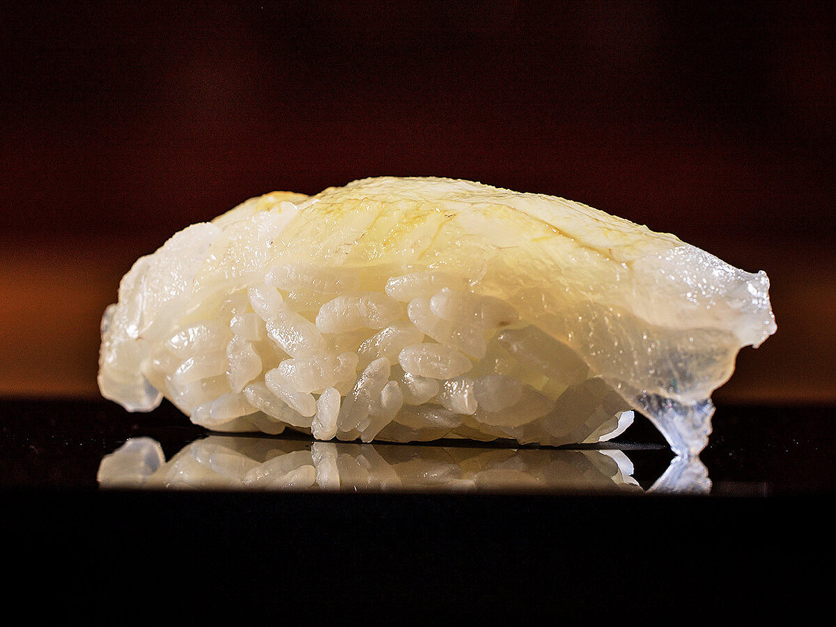 様子がいい、流麗なフォルムの握りは「側面をびしっと締めるのが『すきやばし次郎』の伝統です」と、川口さん。