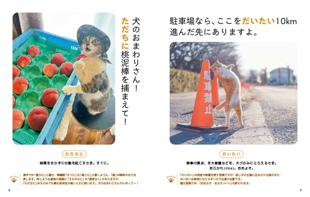 おもしろかわいい猫の写真とその大喜利で、ニヤニヤと、そしてクスッと笑いながら、副詞のおもしろさに気づき、学びを得られる1冊です。いろいろな表情の愛らしい猫たちとその大喜利をお楽しみいただけると幸いです。