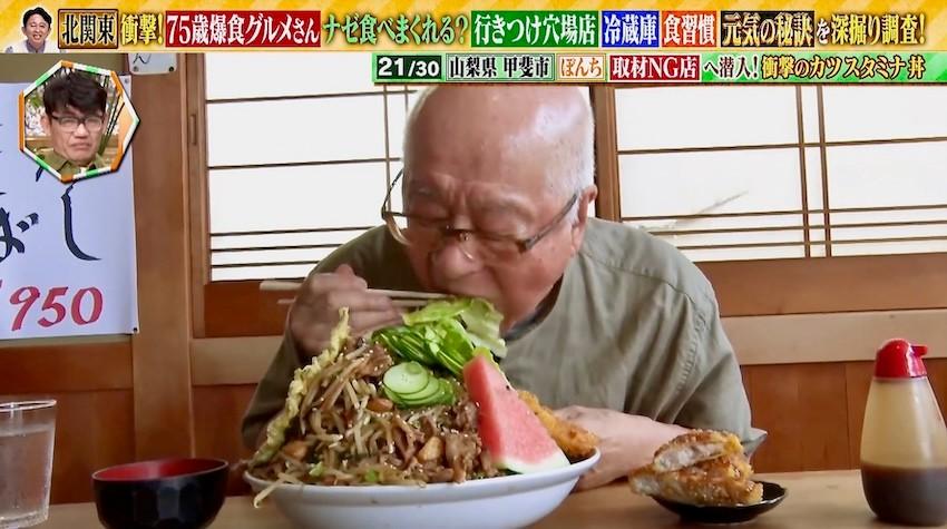 【動画】なぜ食べまくれる? 75歳爆食グルメさん、その元気の秘訣とは有吉弘行も驚く脅威の食欲