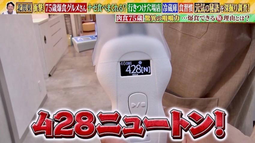 またグミをどこまで砕けるか、消化に関する咀嚼(そしゃく)力を調べる検査では10段階評価(0〜9)で、8、9という結果に。よくかむことで唾液(だえき)の分泌が促され、消化する力の目安であるブドウ糖の濃度が高まるが、その測定値が100を上回るのが望ましいとされるなか、高橋さんの数値は263だった。