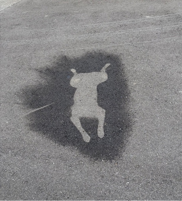 【写真を見る】思った以上にリアルな姿…!地面に出現した「犬拓」
