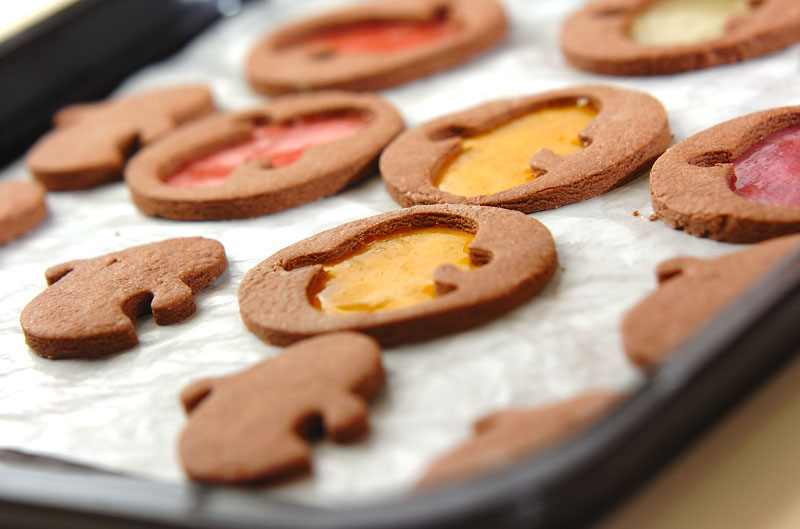 型で抜いたところに砕いたキャンディーを入れて焼くと、ステンドグラスのような仕上がりに。サクッ、パリッという食感が心地良く、飴の色や型を変えればアレンジ自在。ハロウィンのお菓子配りにも喜ばれそうです。