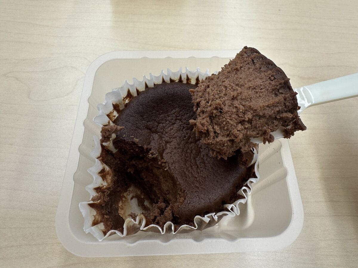 チーズケーキ同様、スプーンを入れるとサクっふわぁ〜とした軽さ! ひとくち食べると、ほんのりビターで濃厚な