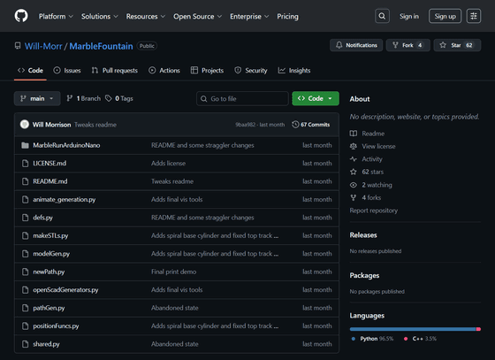 モリソン氏はMarble Fountainを出力するためのコードも公開しています。