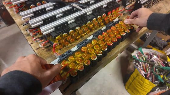 ドエルさんが作ろうとしているのは、約2500Whの容量を持つ大規模なバッテリーパックです。これがあれば作業場に数日分の電力を供給できるほか、家全体の電力を約8時間まかなうことが可能だとのこと。