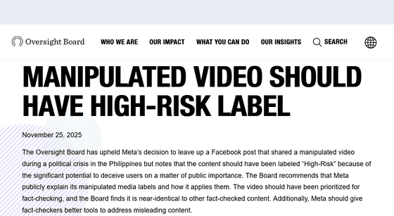 申し立てを受け、監督委員会は2025年11月25日に調査結果を報告しました。調査の結果、今回の投稿には政治的投票に関することなど「Metaの誤情報ポリシーで禁止されている種類のコンテンツ」が含まれていなかったため、監督委員会は「投稿はそのまま残すべきだったというMetaの見解に同意します」と述べています。その上で、投稿にはデジタル加工されたフォトリアリスティックな動画が含まれており、重要な公共イベント中に公衆を欺くリスクが高いと判断されました。そのため、監督委員会は「Metaは当該コンテンツに『高リスク』ラベルを付与すべきだった」と指摘しています。