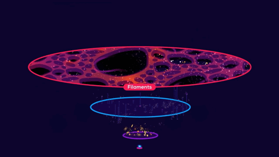 宇宙は銀河、銀河団、超銀河団とスケールが大きくなっていき、最終的には銀河フィラメントという隙間で隔てられた巨大構造によって形成されています。