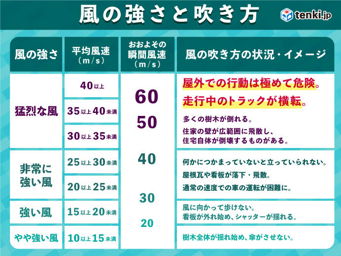 今日14日から明日15日にかけて予想される最大風速(最大瞬間風速)