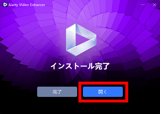 「aiarty-video-enhancer.exe」という実行ファイルがダウンロードできるので、これをダブルクリックで起動します。