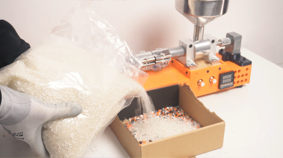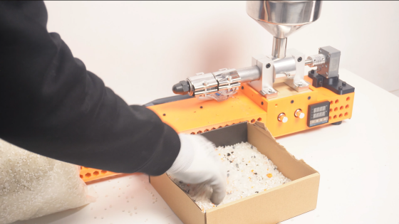 プラスチックごみを自宅で再びフィラメントとして使える形に戻す装置「ExtrudeX」が登場しました。