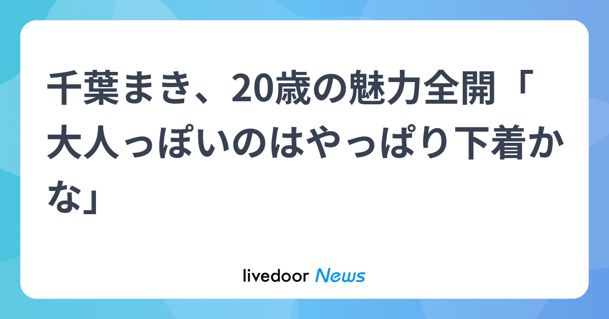 ニューストップ > 芸能ニュース > 芸能総合ニュース > 千葉まき、20歳の魅力全開「大人っぽいのはやっぱり下着かな」 千葉まき、20歳の魅力全開「大人っぽいのはやっぱり下着かな」 千葉まき、20歳の魅力全開「大人っぽいのはやっぱり下着かな」 2026年3月1日 11時6分 Girls News リンクをコピーする みんなの感想は? 関連情報(BiZ PAGE+) インフルエンサー, タレント, ナレーター, 俳優, 動画, 推し活 ランキング 総合 国内 政治 海外 経済 IT スポーツ 芸能 女子 1. Vaundy東京D公演 来場者がはしか 2. 男児をホルマリン漬け「可愛い」 3. 乳児死亡 29歳母親に無罪判決 4. 架空の商品を購入 カウカウ登場 5. 「略奪不倫」報道のアナ 異動か 6. 青色に反応 珍アレルギーが判明 7. 愛知・東三河の県立高校の男子生徒がはしかに感染確認 同じ高校の関係者で15人に 8. 「SANAE TOKEN」金融庁が調査へ 9. 堀江氏 大谷は「役に立たない」 10. 欠席が続く安住アナ 心配の声 11. ファーストリテイリング 1カ月早い入社式 12. 女児重体 執行猶予中も違反か 13. イラン大統領府 攻撃されたか 14. 屁が頻繁に出る 病気のサイン 15. 楽天モバイル、「Rakuten WiFi Pocket 5G」発売開始 プランとセットで2990円 16. 「さらし行為」ひろゆき氏が私見 17. 機内で迷惑撮影…YouTuberが物議 18. 土屋太鳳、共演俳優の演技を絶賛「まさか、その方々とご一緒できるとは…!」 19. 車の「358」ナンバー なぜ人気? 20. 大河 直の悲劇に号泣「残酷」 1. 男児をホルマリン漬け「可愛い」 2. 乳児死亡 29歳母親に無罪判決 3. 愛知・東三河の県立高校の男子生徒がはしかに感染確認 同じ高校の関係者で15人に 4. 女児重体 執行猶予中も違反か 5. 参院選で大量水増し 4人書類送検 6. 党首選 ラサール氏が立候補表明 7. 維新が衆院選演説動画を「ネット広告」で配信 「公選法違反」指摘うけ陳謝 中司幹事長 8. 部員が薬物使用か 廃部検討せず 9. SANAE TOKEN 企業CEO出現に困惑 10. イラン問題 ガソリン328円に? 11. 入試で出題ミス 24人を追加合格 12. SANAE TOKEN了承? 後援会を直撃 13. 呼吸器はずれ死亡 4200万で和解 14. ネタニヤフ首相 北を止めず 15. 知床事故「忘れ去られる」発言か 16. 会社社長ら2人殺害 死刑囚が死亡 17. セブン 朝限定でおにぎり100円に 18. 半年ぶりに皆既月食 雨雪も、見える地域は限定 19. 「ドリフト界のカリスマ」ら逮捕 20. 月200時間超→脳出血 労災認定 1. 父の死後「封筒」が招いた悪夢 2. 美容師「しんどい」と思う瞬間 3. SANAE TOKEN「詐欺行為」批判 4. 新幹線で隣が男性 不快感の正体 5. 「SANAE TOKEN」高騰→一転暴落 6. 低年金高齢者 各地で過酷な事態 7. 「どこまでも汚い」大石氏が批判 8. 子ザルのパンチくん、友達と遊ぶ 9. 韓国 漢字を100%捨てた理由とは? 10. 「一緒にいたい」逮捕の女が供述 11. 外国人が不正? 外免切替に不満 12. 維新、衆院選中に吉村代表らの選挙演説を「有料広告」としてユーチューブ配信…大阪府警に事実関係を申告 13. 「性欲は邪魔」21歳で去勢手術 14. 小島よしおが語る「至福の時間」 15. 73歳祖母の「シール帳」に大反響 16. 養育費「2万」の独り歩きに警鐘 17. 不正受け 警察庁が異例の防止策 18. 出前館「1時間通知遅れ」大混乱 19. 「日本の精神性が世界をリードしていかないと地球が終わる」 安倍昭恵氏インタビュー - BLOGOS編集部 20. 日本保守党の内紛を高須幹弥氏が語る「ペットボトル事件」と河村たかし・百田尚樹の対立構造 1. イラン大統領府 攻撃されたか 2. 渋谷で台湾人客の子どもに…ドン 3. 米とイスラエル 核施設を攻撃 4. ジャカルタ近郊で邦人13人を拘束 5. トランプ米大統領の首に発疹 6. 中東最大級の石油貯蔵施設で火災 7. イスラエル軍、レバノン侵攻か 8. 香港女優 日本で頭を負傷 9. 露の「切り札」実戦では不十分 10. 日本旅行の動画出しただけで謝罪 11. 中国 福島第1原発事故は「人災」 12. 対イラン攻撃は「まだだ」 13. セアダット氏「外交交渉はない」 14. 「エプスタイン調査」関係を語る 15. イランで少なくとも787人死亡 16. 中国で流行語入り「初代同僚」 17. ミャンマー 自動車の使用制限へ 18. 衝撃真実 韓国経済急成長の理由 19. サウジの米大使館に無人機攻撃 20. フランスが保有核弾頭数を増加 1. 「SANAE TOKEN」金融庁が調査へ 2. 32歳、一人暮らし男性にパーソナル食洗機SOLOTAがもたらした嬉しい変化 3. ドン・キホーテの新業態を出店へ 4. アマゾン施設 ドローン被害発表 5. 税理士「年金は繰上げ受給が得」 6. 60代からNISAで月3万円 メリット 7. 疲れにくいと話題のビジネス靴 8. 米攻撃で「物価高騰時代」の再来 9. PayPayが米上場、時価総額2兆円 10. ニデック問題 第三者委が指摘 11. 日経平均株価が大幅下落 円安も 12. ニデックの会計不正 背景に重信 13. てんや 期間限定メニューを販売 14. 話題のリカバリーウェアが20%OFF 15. メルカリ 匿名で返品が可能に 16. NANO universeがAmazonで40%OFF 17. EUドルが急落 一時1.1530ドルも 18. 万博で導入したEVバス負の遺産化 19. 東京株式市場 中東情勢に警戒感 20. 納税で損しない 最強クレカ10選 1. 楽天モバイル、「Rakuten WiFi Pocket 5G」発売