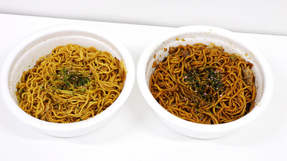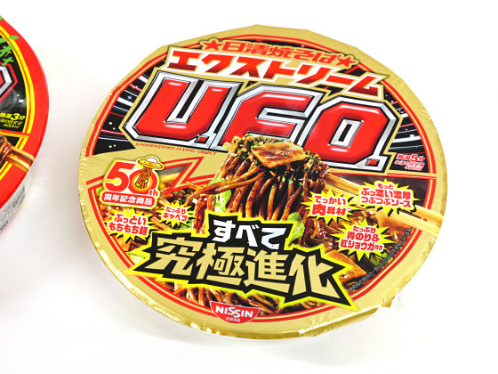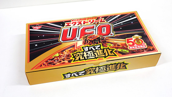 日清焼そばU.F.O.の発売50周年を記念してソース・麺・具材・ふりかけを「究極進化」させた「日清焼そばエクストリームU.F.O.」が2026年3月2日に登場しました。通常のU.F.O.と比べて「ソースの濃さが約110%にアップ」「麺の太さが約114%にアップ」「肉具材の体積が約169%にアップ」「ふりかけの量が約130%にアップ」という豪華仕様とのこと。通常版U.F.O.とエクストリームU.F.O.を比べられるセットがGIGAZINE編集部に届いたので、実際に食べて比べてどれだけエクストリームなのか確かめてみました。