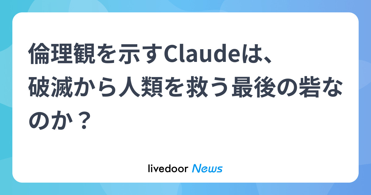 ニューストップ > IT 経済ニュース > IT総合ニュース > 倫理観を示すClaudeは、破滅から人類を救う最後の砦なのか? 倫理観を示すClaudeは、破滅から人類を救う最後の砦なのか? 倫理観を示すClaudeは、破滅から人類を救う最後の砦なのか? 2026年3月5日 7時0分 WIRED.jp リンクをコピーする みんなの感想は? ランキング 総合 国内 政治 海外 経済 IT スポーツ 芸能 女子 1. 乳児死亡 29歳母親に無罪判決 2. 巨乳を描いた10円玉 多数出回る 3. 大谷の人格に言葉失う…理由解説 4. 白衣着て医師を装いわいせつか 5. WBC 韓国戦で「ガラガラ」困惑 6. 性的暴行か NHKディレクター逮捕 7. 麻原氏の次男宅から驚きの証拠品 8. 無愛想で知られる大谷…豹変か 9. 稲垣「ヒロくん」と離別したか 10. 堀江氏 突如「クソみたい」激高 11. GACKTに指摘「感覚ズレている」 12. 劇団ひとり 娘の卒園式で失敗 13. サナエトークン巡り重大疑惑浮上 14. 「相棒24」最終回SP 予告が話題 15. 脳梗塞&失語症 M-1復帰の芸人 16. メルカリに転売ヤーつぶし組出現 17. 嵐の新曲「Five」5年ぶりMV公開 18. 天皇陛下がつい本音か 発言話題 19. 「Mステ」に大森ら 豪華面々登場 20. 初来日 日本のカレー食べて一言 1. 乳児死亡 29歳母親に無罪判決 2. 巨乳を描いた10円玉 多数出回る 3. 白衣着て医師を装いわいせつか 4. 性的暴行か NHKディレクター逮捕 5. 麻原氏の次男宅から驚きの証拠品 6. サナエトークン巡り重大疑惑浮上 7. メルカリに転売ヤーつぶし組出現 8. 天皇陛下がつい本音か 発言話題 9. 岡山発激安スーパー 全国展開へ 10. 羽賀研二 服役後飲み歩けた理由 11. 刺されたママが外に 腸出ていた 12. 「Japan is Back」中止に→困惑 13. 小川晶氏 再選後に態度が豹変か 14. 竹内と熱愛報道女優大出世確定か 15. 「うつすよ」わいせつ行為に抵抗 16. 「ダイドー」自販機2万台撤去へ 17. 日本には8種類の韓国人がいる 18. りくりゅうへの失礼質問を猛批判 19. 映画監督・榊英雄被告へ懲役判決 20. 妊婦搬送→流産「因果関係ない」 1. ロト7 全国売り場初12億円が出た 2. ホルムズ海峡封鎖→海自が活躍か 3. 高市首相「イランの行動を非難」 4. サナエトークン変更も…再び非難 5. はいそれサギです 替え歌が話題 6. 身動き取れず遅刻 小野田氏陳謝 7. 旧二階派 政策研究会立ち上げ 8. 泉健太氏 文科大臣に呆れて苦笑 9. 低年金高齢者 各地で過酷な事態 10. 二階元幹事長が「頑張れ」と激励 11. TV局が政治記者に頼る本当の理由 12. トイレとクローゼットに男女遺体 13. 紀子さま同行…悠仁さま複雑胸中 14. ラサール氏出馬でネット冷笑の嵐 15. 旭川17歳殺害 女の供述食い違う 16. 新幹線の文字ニュース終了へ 17. 外国人が不正? 外免切替に不満 18. 「SANAE TOKEN」巡る一文 物議 19. メガソーラー予定地で有害物質 20. 宝塚市りくりゅう表紙を突貫制作 1. 初来日 日本のカレー食べて一言 2. イランのドローン空母無残に撃沈 3. 中国製防空システムへ深刻な疑問 4. 元王子の元妻 ホームレス状態に 5. 中国の自動車産業で泥沼消耗戦 6. イラン首都に新たな大規模攻撃 7. 米軍がイラン艦撃沈 残酷な現場 8. 原油枯渇したら日本はどうなる? 9. バハマ船籍の原油タンカー爆発か 10. 報復の矛先はトルコ NATOも反発 11. イランの世界遺産 空爆の被害 12. トランプ氏と欧州首脳らに亀裂 13. 「ペガサス3」世界興収1位に 14. スシロー店舗を当局が検査、「マグロに寄生虫の卵」と客主張―中国 15. 米国に驚くべき諜報能力があった 16. アリサ・リュウ 意外なSNS使用法 17. イラン外相、米国に報復を示唆 18. 東京に4つ「在日朝鮮人街」ある 19. 台湾 中国からの侵食に危機感か 20. トランプ氏すぐ逃げる 大胆予測 1. セブン3日間だけ朝に値下げ 賛否 2. 貯金5000万円も…75歳男性の後悔 3. ジャングリア沖縄 成否正念場に 4. 露経済 裏で進む「静かな崩壊」 5. カスハラでバス運休「英断」の声 6. 転職10回「脳腫瘍のせいでした」 7. なぜ今コメ価格が下がっている? 8. ニューバランスの靴 ほぼ半額も 9. 反日デモない 中国政権恐れてる? 10. 医師救う ChatGPTのすごい使い方 11. 前市長 学歴偽り重すぎる代償か 12. Clarksのシューズが最大65%OFFに 13. 最大65%OFFも Amazonの目玉商品 14. サッポロHD 自販機事業撤退へ 15. 黒字リストラ 想定外事態に後悔 16. 中国ファンド ブルーボトル買収 17. OliveがPayPay連携で…大激変 18. イラン ホルムズ海峡が再開された場合、生物兵器を発射すると警告 19. てんや 期間限定メニューを販売 20. 花王「洗面台クリーナー」が好調 1. 即買い Amazonセールの売れ筋20 2. 月収20万減「AIに仕事奪われた」 3. 家をもっと便利に towerがセール 4. Apple「MacBook NEO」発売へ 5. UNITED ARROWSがすべて40%OFFに 6. Airpods最新モデルが楽天でSALE 7. カップ麺や袋麺が最大40%OFFに 8. プレステ5本体もAmazonでSALEに 9. Amazonセールで飲料が最大50%OFF 10. THE NORTH FACEが最大45%オフに 11. ヘインズのTシャツが最大50%OFF 12. BBQにも コールマンが最大64%OFF 13. ツルツルになると話題の歯ブラシ 14. ザバスのプロテインが最大19%OFF 15. Amazon限定販売 SALE商品まとめ 16. アンダーアーマーが最大58%OFFに 17. 眠れて
