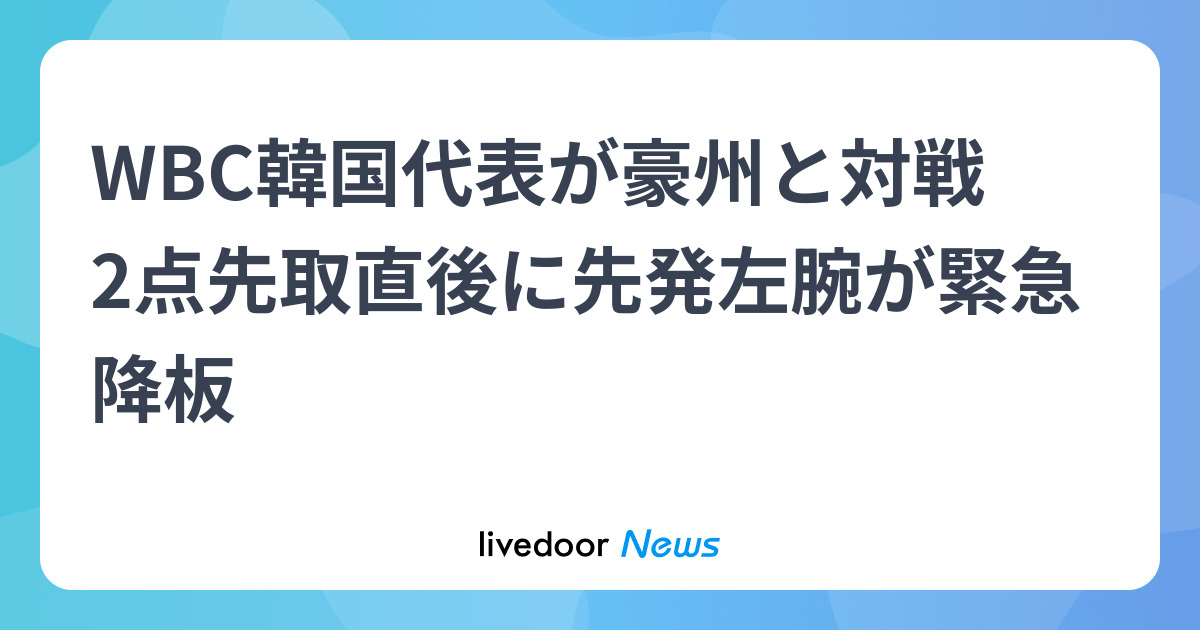 ニューストップ > スポーツニュース > 野球ニュース > 【WBC】C組突破目指す韓国にアクシデント 2点先取直後に先発左… 東京ドーム オーストラリア 韓国 ワールド・ベースボール・クラシック 【WBC】C組突破目指す韓国にアクシデント 2点先取直後に先発左腕が緊急降板 投球練習中に違和感か…豪州戦 韓国先発左腕が緊急降板 豪州戦 2026年3月9日 20時0分 スポーツ報知 リンクをコピーする みんなの感想は? 外部サイト 【イラスト】WBC日程&組み分け 侍ジャパン世界一への道のり 2023年WBC MVPは大谷翔平「終わってしまうのさみしい」胴上げで3回宙舞う 大谷翔平は「日本の象徴」侍・井端弘和監督がWBC連覇へ「どんどん引っ張っていって」 ランキング 総合 国内 政治 海外 経済 IT スポーツ 芸能 女子 1. 山本舞香に降板報道「限界」か 2. 重度障害の娘を殺害? 母親を逮捕 3. ネトフリの扱い 視聴者怒りの声 4. WBC豪州 日本ファンへメッセージ 5. スギ人工林2割減「地道すぎる」 6. 家政婦が俳優の長男を殺害…なぜ 7. 水卜アナと「極秘交際」の真相 8. 桑田氏 1.5億円施設を放置で苦言 9. 村上の態度に「これはない」炎上 10. 大食いYouTuberにまたも疑惑浮上 11. 東京駅100周年記念Suica失効危機 12. 「日本で人生壊れた」外国人の声 13. 保育所で園児が手紙で「死ね」 14. カズレーザー 5年ぶりに食べた物 15. 子ザルのパンチくん 左腕の状態 16. NetflixのWBC中継 話違くない? 17. 敗退の豪州主将ベンチから動けず 18. 近藤千尋の体の悩み 娘3人に遺伝 19. 「実は友達ではない人」の特徴 20. 頭で考えるだけで操作できるVR? 1. 重度障害の娘を殺害? 母親を逮捕 2. 家政婦が俳優の長男を殺害…なぜ 3. 保育所で園児が手紙で「死ね」 4. 「日本で人生壊れた」外国人の声 5. 子ザルのパンチくん 左腕の状態 6. 「実は友達ではない人」の特徴 7. 男子中学生らが盗撮疑い 宮崎 8. 「今月レギュラー200円超えちゃう」原油急騰で対応追われるガソリンスタンドも…スーパーの“生鮮食品トレー”も値上げ懸念 9. 富士山で男性2人が約400m滑落か 10. 旭川殺害 ラーメン写真にキレた? 11. 「ラッパー男」あおり運転されたと言いがかりをつけ顔を約10回殴打 全治6か月のけが負わせる 12. サナエトークンで藤井教授に謝罪 13. ネコ焼かれ切られ火葬するとネジ 14. 未承認たばこニコパフ 初の摘発 15. 上半身裸で…乱痴気騒ぎの日常か 16. 「黙れ小僧!の顔」の柴犬が話題 17. 株価急落「トリプル安の可能性」 18. 在留資格手数料 大幅引き上げへ 19. 1度は詐欺と見抜くも…番号偽装 20. 違法薬物所持疑いで41歳女を逮捕 1. スギ人工林2割減「地道すぎる」 2. 浴室で女性死亡 体液こびりつく 3. 息子の卒業旅行計画に母が絶叫 4. 「解雇有効」不適切発言の内容 5. ANAで座席指定できない 困惑の声 6. NHK党「休眠」元公設秘書が暴露 7. FIFA現地リポーターのチャンス 8. WBC観戦の愛子さまに注目集まる 9. 防衛大校長に異例の元制服組起用 吉田圭秀前統幕長 10. 実業家が「豚まん投げつけ」被害 11. 自民党が圧倒「ネット空中戦」 12. わがまま末っ子 母の遺言に悲鳴 13. 金融庁も動く 高市政権の本気度 14. 「どこまでも汚い」大石氏が批判 15. 48歳妻「死んでも夫の介護イヤ」 16. 韓国に見切り? 日中急接近の裏側 17. 終の棲家追われ…母娘の残酷余生 18. 皇后さま WBC観戦を「楽しみに」 19. パトカー盗まれる事案発生 三重 20. 小沢元代表「(離党)早まらない方がいい」 1. トルコ NATOのミサイルを破壊 2. 文書に250回以上登場…疑惑の目 3. 正恩氏娘と金与正氏 地位逆転か 4. 英元王子の新写真に国民「ゾッ」 5. 韓国第2の都市 なぜ消滅危機直面 6. ホルムズ海峡封鎖「絶対に無理」 7. 朝鮮学校 自分の子は通わせない 8. ウの部隊 すでに中東へ派遣か 9. 原油価格100ドル超 産業界に暗雲 10. 中国人が驚く日本人の「要求」 11. 山中に隠された謎の「財宝」発見 12. 中国のアニメファンで店が大混雑 13. 金正恩氏娘の世襲 体制に疑問も 14. 北朝鮮に「新たな核疑惑」が浮上 15. イラン攻撃「まもなく終わる」 16. トランプ氏 イランの過ちを指摘 17. ベルギーのユダヤ教礼拝所で爆発 18. WBC日韓戦「旭日旗」応援に怒り 19. 楽しい夜を…米富豪のメール解析 20. 中国「金魚の都」500年の歴史 1. ガソリン 1カ月で235円まで上昇? 2. 国家備蓄石油の放出準備指示 3. 優しい上司 トイレで本音を爆発 4. 気まずい会議 一瞬で変える一言 5. 息子の卒業旅行計画に母が絶叫 6. 年収が低い会社ランキング2025【中国&四国地方・トップ5】1位は291万円、300万円台が3社 7. 「トリプル安」で市場、阿鼻叫喚 8. 一攫千金も 富豪生活で後悔 9. 中小企業が退職金制度導入せぬ訳 10. 「筋トレしない40代」の末路 11. 「地頭のよさ」感じる子ども 12. 浪費を続ける70代男性の生き方 13. 竹中氏が安野氏に注目する理由 14. ブラック企業の遺物? SNSで話題 15. 成田空港への新たなルート誕生へ 16. 一強に風穴 ゼッテリアの勝機 17. 東電 4月にも企業向け値上げか 18. 自宅に「400万円」のタンス預金があります。銀行に入金すると“税務署に連絡がいく”と聞いたのですが、税