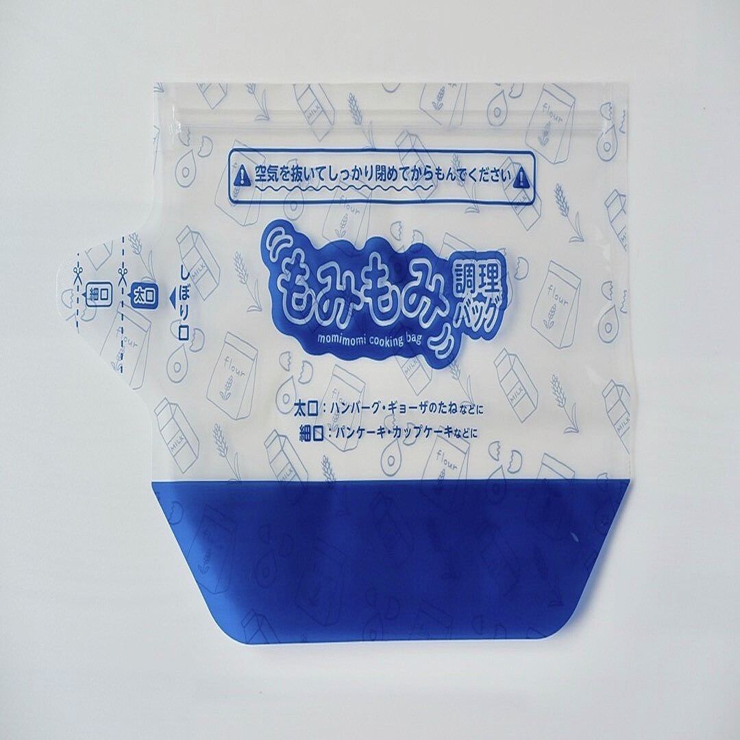 - 袋のサイドには、こねたあとのひき肉を出す絞り出し口がついている