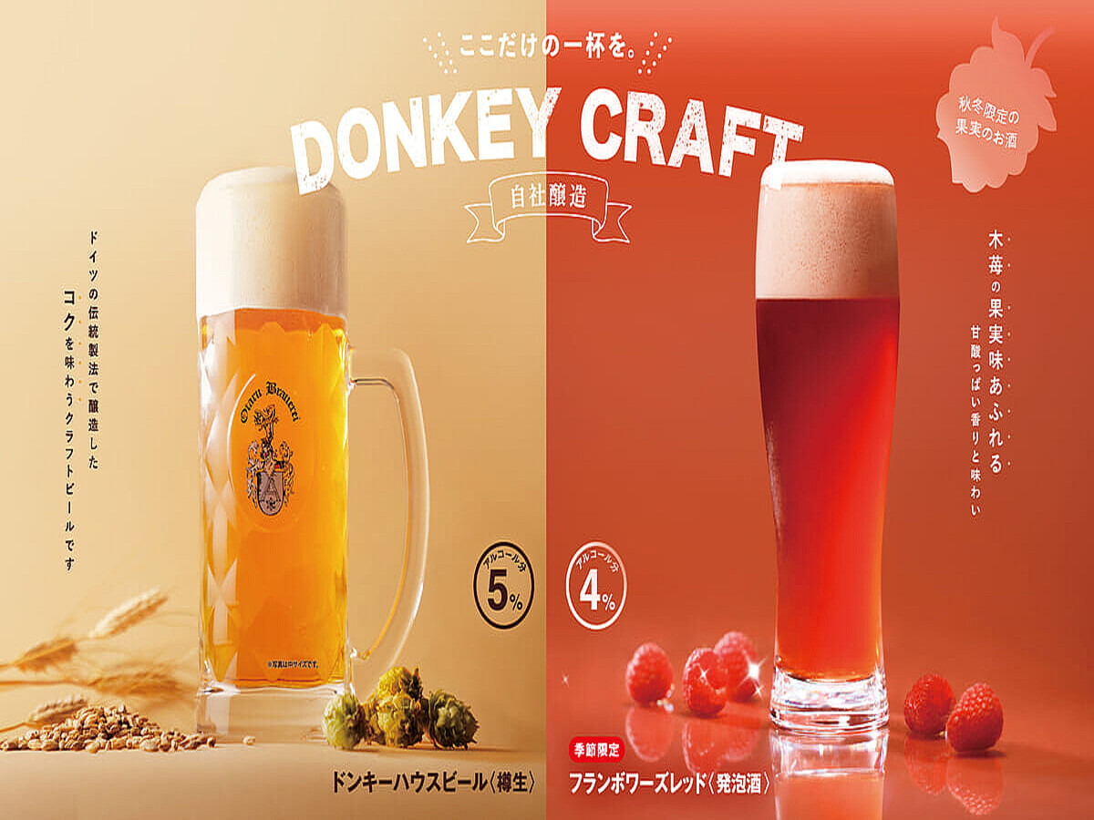 ニューストップ > ライフ総合ニュース > びっくりドンキーに季節限定の「フランボワーズレッド」が登場 びっくりドンキー ソフトクリーム ハンバーグ デザート ドリンク 自転車 箱 ポテト ビール 香り Dtimes びっくりドンキーに季節限定の「フランボワーズレッド」が登場 2025年10月8日 14時32分 リンクをコピーする びっくりドンキーが自社醸造しているビールに、季節限定の「フランボワーズレッド」が登場。木苺の甘みと華やかな香りが楽しめ、ノンアルクールのビールテイスト飲料も用意されます☆ びっくりドンキー「フランボワーズレッド」 販売期間:2025年10月8日(水)〜※予定より早く販売を終了することがあります ハンバーグレストラン「びっくりドンキー」に、季節のお酒「フランボワーズレッド」と、ノンアル 記事を読む