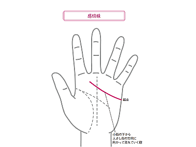 - 心や愛情に関してのことが強く出る感情線の見方を紹介している
