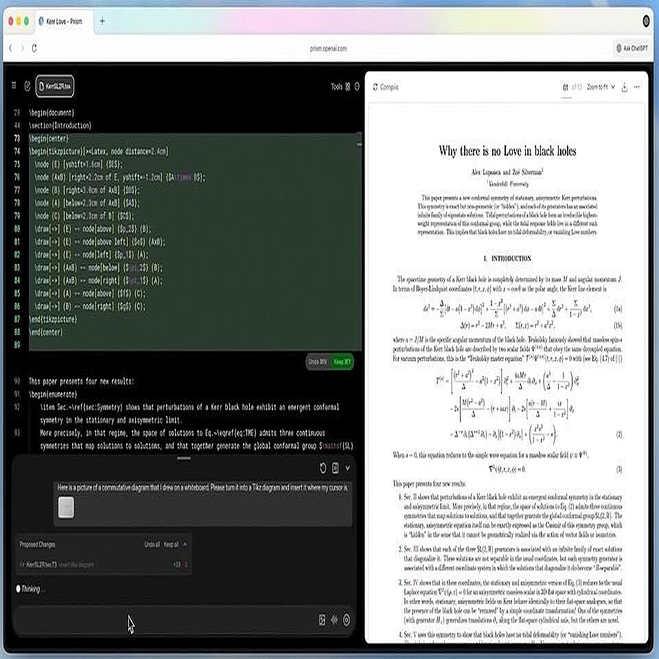 ニューストップ > IT 経済ニュース > ガジェットニュース > 「OpenAI」が新しいAIツール「Prism」を公開 科学論文を執筆 ChatGPT 科学 便利 モデル アプリ PDF サイエンス ブラウザ ガジェット ギズモード・ジャパン 「OpenAI」が新しいAIツール「Prism」を公開 科学論文を執筆 2026年1月28日 5時26分 リンクをコピーする Image: OpenAI OpenAIが新しいAIツール「Prism」を公開しました。OpenAIは今年、AI×サイエンスをがんばるそうで、その第一歩であるPrismは科学論文を執筆するためのブラウザアプリです。多数の資料をアップロードでき、AIのサポートを受けながら書き進められます。サイエンス向けのAIツールといえばGoogleのNotebook LMがありますが、Prismは遙かにガチな仕様。科学者・研究者向けのツール 記事を読む