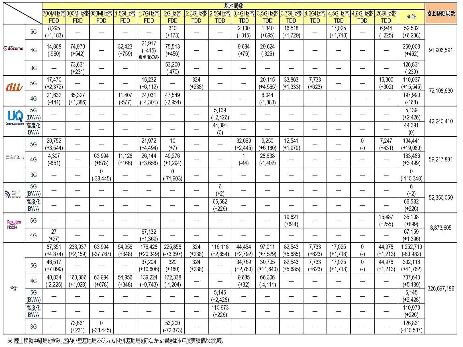 ニューストップ > IT 経済ニュース > 5Gの基地局展開の状況 主戦場が通信速度よりも混雑耐性に? 調査結果 5G 楽天モバイル 市場 モデル NTTドコモ 投資 KDDI 総務省 ケータイ Watch 5Gの基地局展開の状況 主戦場が通信速度よりも混雑耐性に? 2026年2月1日 6時0分 リンクをコピーする by ライブドアニュース編集部 ざっくり言うと この記事の見出しと要約はライブドア社が開発したAIにより自動生成されたものです。実験的な機能のため、記事本文と併せてご確認ください。 携帯大手4社の2025年3月末の携帯基地局数は113万6592局だった 5Gの本格普及フェーズに入り、通信トラフィックの中心は5Gへ移行 5G基地局数が通信品質の差に影響を及ぼしていることが推測される 記事を読む