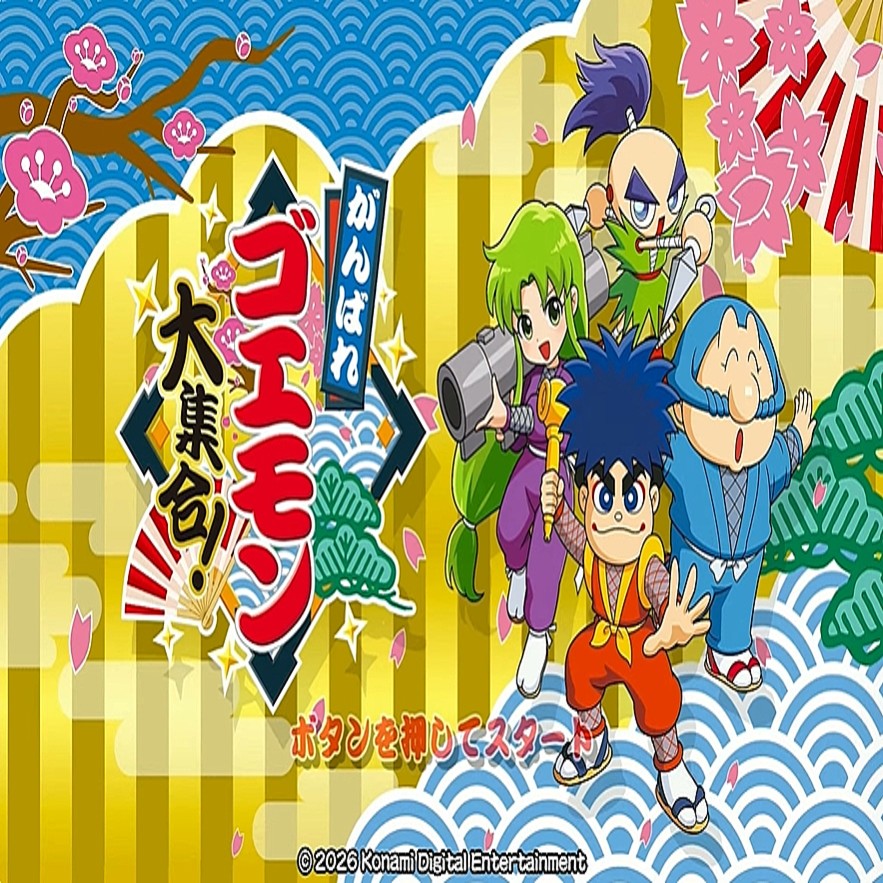 【Nintendo Direct ソフトメーカーラインナップ 2026.2.5】 2月5日23時~ 配信開始 配信番組「Nintendo Direct ソフトメーカーラインナップ 2026.2.5」にてNintendo Switch用アクション「がんばれゴエモン大集合!」の発売が決定した。7月2日に発売を予定。 本作はアクション「がんばれゴエモン」シリーズ13タイトルを1本にまとめたセット作品。40周年を