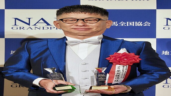 ニューストップ > スポーツニュース > 競馬ニュース > 年度代表馬・ディクテオンが東京大賞典を制覇「ドラマ」の舞台に決意 インタビュー グラン ダート ワールドカップ 東京大賞典 飛行機 ドバイ スプリント 競馬 韓国 競馬のおはなし 年度代表馬・ディクテオンが東京大賞典を制覇「ドラマ」の舞台に決意 2026年2月24日 22時42分 リンクをコピーする 2月24日、都内で開催された「NARグランプリ2025」の共同記者会見に、年度代表馬ディクテオンを管理する荒山勝徳調教師が出席した。東京大賞典制覇により満場一致で年度代表馬に選出された同馬について、「日本のダート馬で一番だと自負している」と胸を張り、地方所属馬として20年ぶりの快挙となった勝利の重みを語った。韓国・コリアカップ制覇、東京大賞典でのJRA勢撃破と、大舞台で結果を残してきたディクテオン。海外遠征 記事を読む