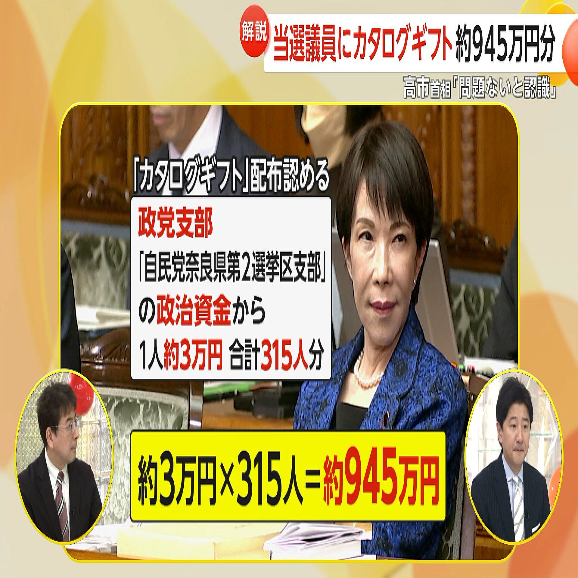 高市首相が自民党の衆議院議員全員に約3万円分のカタログギフトを配ったことについて、野党が批判を強めている。中道改革連合の小川代表は「ギフトを党内にばらまくこと自体の倫理観、金銭感覚、古い自民党の体質。こうしたものを看過するわけにはいかない」、「不問に付さない」と述べ、厳しくただす姿勢を示した。国民民主党の古川国対委員長は「政治不信を生む」として、「選挙に勝って慢心があるのではないか」と指摘。また立