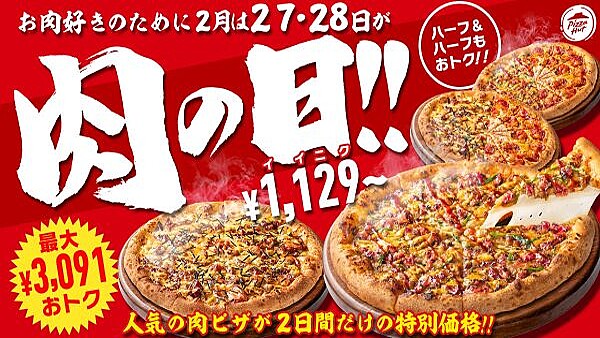 週末の食卓は肉で決まり! 『ピザハット』が2日間限定の「肉の日」で衝撃の特大セールを開催毎月恒例、お肉好きにはたまらない『ピザハット』の「肉の日」が、今月は2月27日と28日の2日間限定で開催中です!今回のメインは、人気ハーフ&ハーフの超お値打ち提供。香ばしさが食欲をそそる“直火焼 テリマヨチキン”や、甘辛い味わいがクセになる“新・特うまプルコギ”と定番ペパロニの組み合わせが、お持ち帰りならなんと1