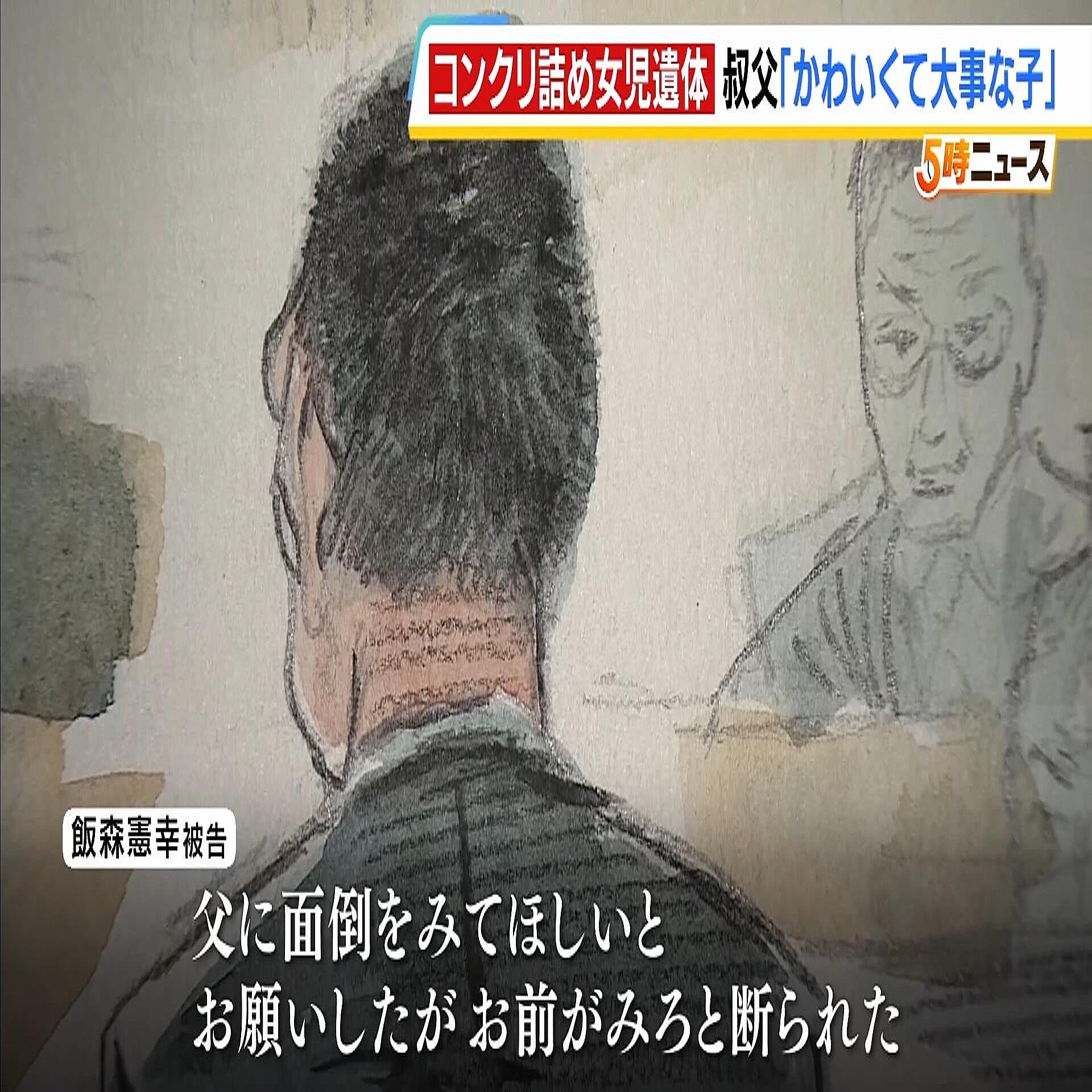 コンクリート詰めにされ、18年もの間、放置された女の子。裁判で叔父は「父親などに助けを求めたが頼ることができなかった」と述べました。(飯森憲幸被告)「玲奈のことはかわいくて大事な子だと思って接していた」起訴状によりますと飯森憲幸被告は約20年前、当時住んでいた自宅でめいの岩本玲奈さん(当時6)に暴行を加えて死亡させ、コンクリート詰めにした遺体を八尾市の住宅に遺棄した罪に問われています。これ