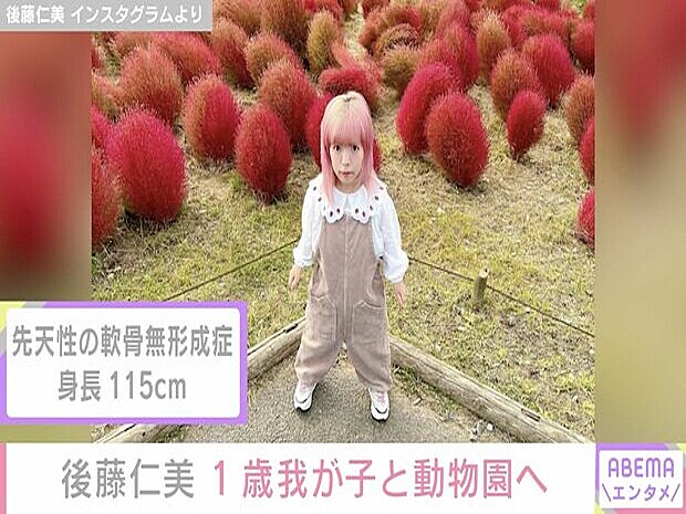 先天性の軟骨無形成症により115cmという低身長でモデルとして活躍している後藤仁美が、動物園での親子ショットを公開した。【映像】我が子との親子ショットや夫婦ショット(複数カット)2017年2月に結婚し、2024年5月には第1子を出産したことを報告していた後藤。これまでInstagramでは、子どもを抱えて沖縄の海を眺める写真や、IKEAでの親子ショットなど、日常の様子を発信してきた。1歳の我が子と動物園での親子ショットに反