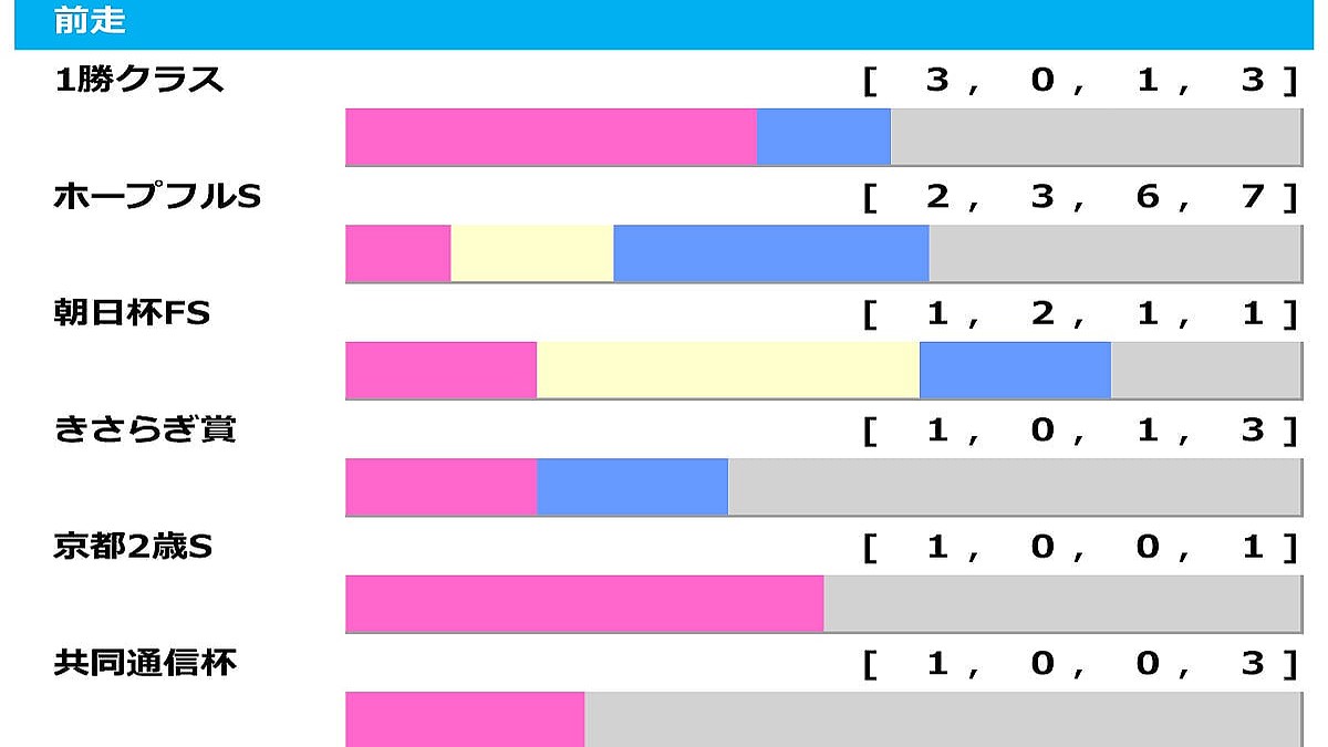 第63回(GII、芝2000m)は3月8日、中山競馬場で開催。朝日杯FSで3着したアドマイヤクワッズ、東スポ杯2歳S勝ち馬のパントルナイーフ、同3着ライヒスアドラーらが出走予定。ここでは過去10年のデータから予想のヒントになる「前走ローテ」を分析していく。 ■GI組は毎年好走 朝日杯FS、ホープフルSといったGIからの臨戦があるなか、最多3勝を挙げているのは平場の1勝クラス組。年明けの中山芝2000m